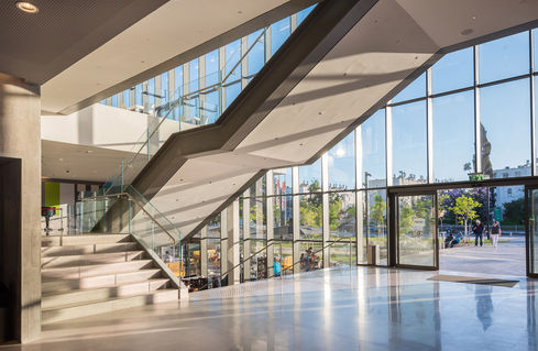 תיאטרון חולון מקבל חיים חדשים. חידוש מבנה תיאטרון חולון, שב-1959 שימש כבית יד לבנים והורחב ב-3 שלבים על ידי אדריכלים שונים, התגבב לכדי מבנה מסורבל להבנה ולשימוש, לא קריא ובעל חזות שאינה משדרת את מהותו. מטרות התכנון: א'- גיבוש זהות חדשה למבנה התיאטרון והפיכתו לאייקון עירוני. ב'- הוספת תוכן ופעילות לשם הפיכתו למקום פתוח, חי ותוסס. ג'- יצירת ממשק חדש עם העיר. ד'- שיפור תפקוד המבנה תוך התמקדות בחללים הציבוריים שלו ובמערכת התנועה. לשם השגת מטרות אלו, ביצענו התערבות כירורגית, מורכבת ומדויקת מאוד, על מנת להחזיר למבנה את הפשטות והניקיון העיצובי שהיו לו ואבדו. ההתערבות כוללת טיפול במעטפת שלו, בכל השטחים הציבוריים וב-2 מתוך 3 האולמות שלו. בנוסף הוספנו לו קפיטריה בממשק עם הכיכר העירונית ואגף חדש, שישמש את בית הספר למשחק ומרכז לגיל הרך. אל מול הבניין החלפנו את הפיתוח הקיים בכיכר עירונית רב שימושית ותוססת, שביחד עם המבנה המתחדש יתנו ערך עצום לנכס העירוני הכל כך חשוב הזה. המבנה מכיל 3 אולמות תיאטרון, הגדול ביניהם מיועד לקהל של 800 אנשים ושטחי מנהלה, תפעול ובית יד לבנים.